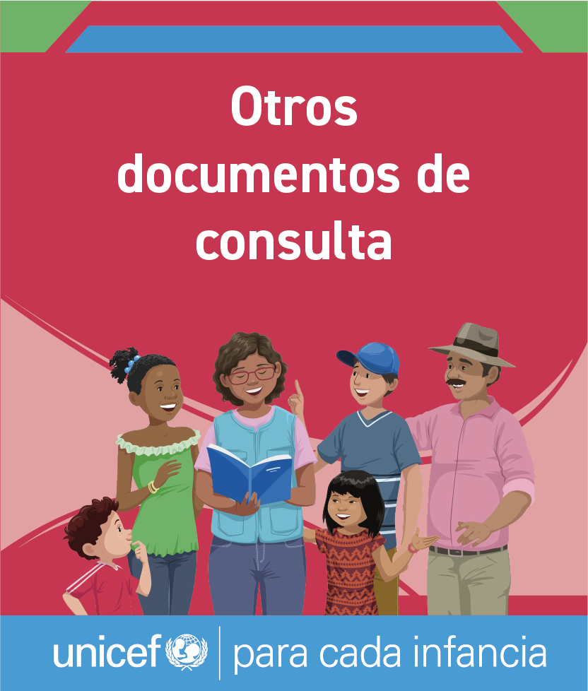 El módulo «Otros Documentos de Consulta» reúne recursos clave para la protección infantil en diversos contextos. Incluye la Cartilla de Rendición de Cuentas, que establece lineamientos para garantizar la participación y el respeto de los derechos en emergencias, y la Guía UNICEF para Espacios Amigables, que ofrece directrices para la creación de entornos seguros para niñas, niños y adolescentes.